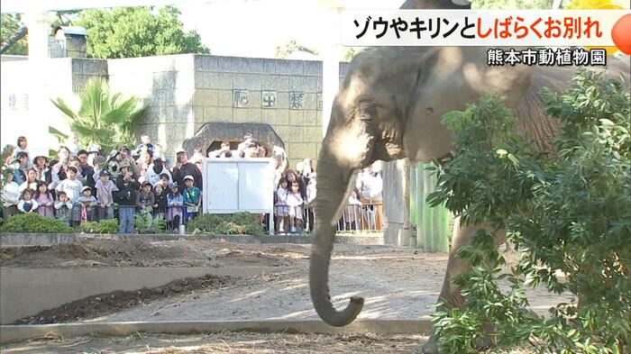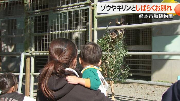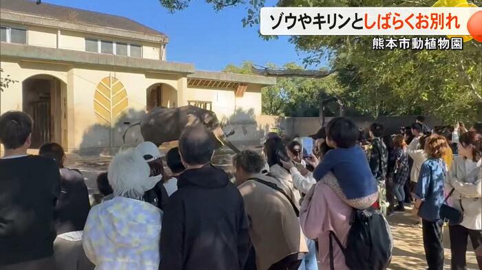 熊本市動植物園では2029年の開園100周年に向けた新しいエリアの整備に伴い、ゾウやキリンなどの観覧が11月3日までということで、多くの人でにぎわった。