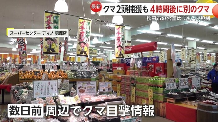 数日前に、周辺でクマの目撃情報があった男鹿市にあるこちらのスーパー。