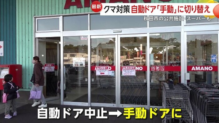 4日も各地で相次いだクマ被害。対策として自動ドアを手動に切り替える施設も。