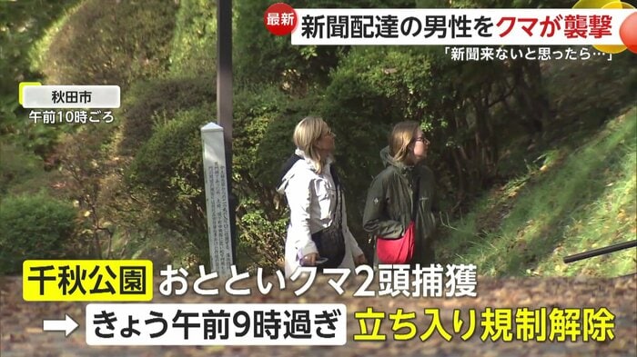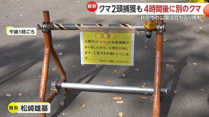 クマの目撃情報が相次いでいた秋田市の千秋公園では2日、クマ2頭を捕獲。