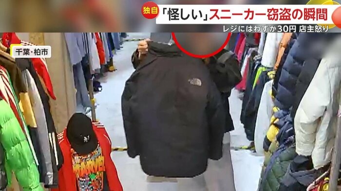 盗まれたのは人気ブランドのスニーカーで、窃盗の一部始終を防犯カメラが捉えていた。店のオーナーは、「精算せずに商品をそのまま持ち帰ったことが発覚しました。リアルタイムで見てました。絶対、これ怪しいなと思いました」と話す。
