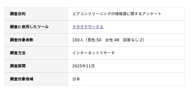エアコンクリーニングの情報源に関するアンケート調査の概要