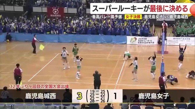 第4セットはお互いの全国への思いが激しくぶつかり、長いラリーが続く展開に。デュースまでもつれる接戦となったが、勝負を決めたのはやはり頼冨のスパイクだった。鹿児島城西は実に32年ぶりの全国大会出場を決めた。