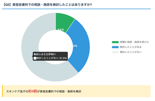 スキンケアの理想と現実にギャップを感じている人に、美容皮膚科での相談や施術を検討したことがあるか調査しました。