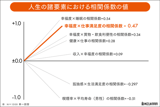 仕事満足度と幸福度の相関係数は【0.47】と判明