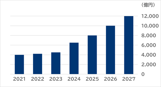 2024年の市場規模は約6,500億円と推定され、前年比40%超の成長を記録。製造業・金融業のDX投資や人手不足が深刻な流通業・建設業、さらに地方自治体での導入が拡大しており、2026~2027年には1兆円を超える見通しである。