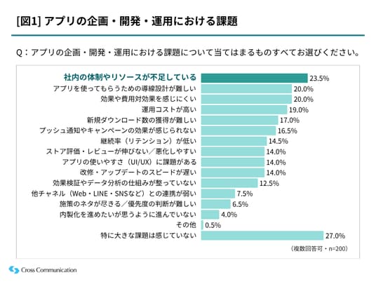 運用課題のトップは「社内体制やリソースが不足」。アプリ運用の実態が浮き彫りに