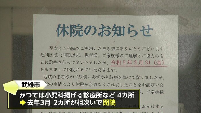 かつて武雄市内には小児科を掲げる診療所が4か所あった。しかし、そのうち半分が去年(2024年)3月に閉院。小児科の減少は、子どもを持つ親にとって大きな問題だ。