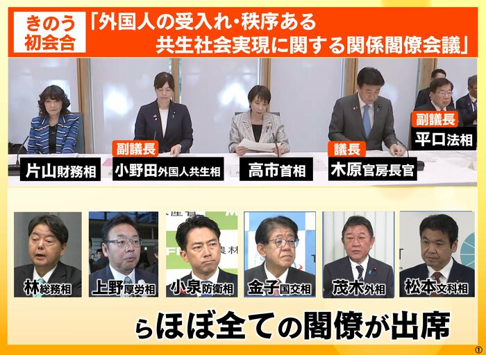 11月4日、「外国人の受入れ・秩序ある共生社会実現に関する関係閣僚会議」が初めて開催され、議長の木原官房長官を含め、ほとんどの閣僚が出席しました。