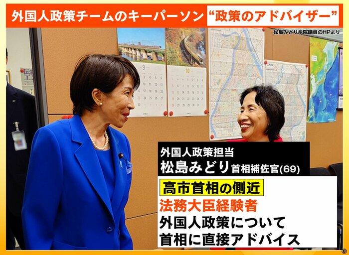3人目のキーパーソンが、“政策のアドバイザー”外国人政策担当・松島みどり首相補佐官(69)です。