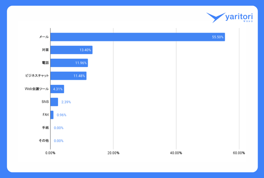 仕事上でよく利用しているコミュニケーション手段で最も多いのは「メール」という結果となりました。