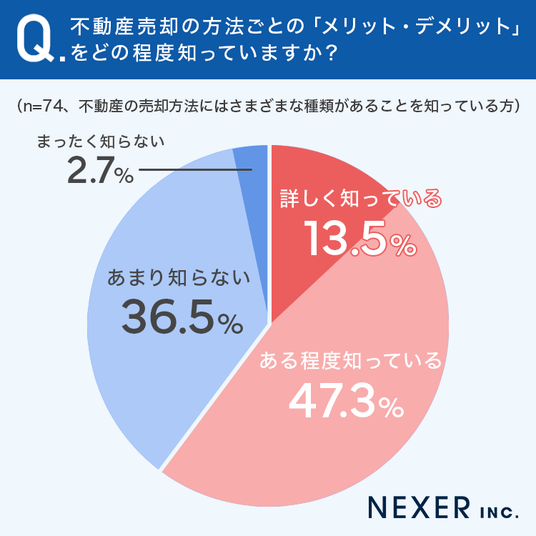 また、不動産売却の方法ごとの「メリット・デメリット」をどの程度知っているかを「不動産の売却方法にはさまざまな種類があることを知っている」と回答した方に聞いてみました。