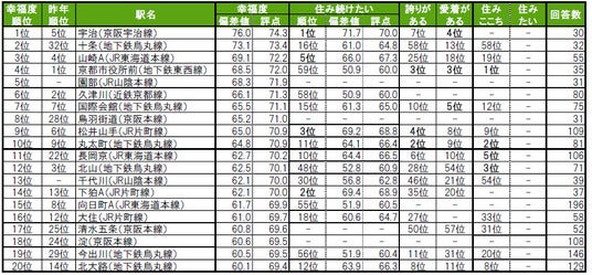 ■街の幸福度(駅)トップは、昨年5位から順位を上げた宇治