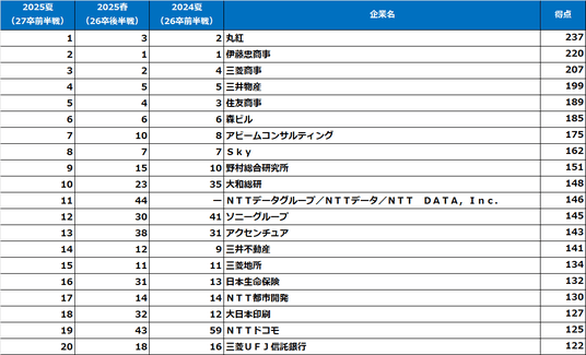 2025年【夏】大学生が選んだ『就職人気企業ランキング』 (2027卒就活前半戦調査)