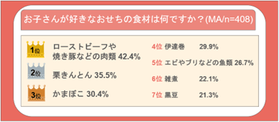 TOPIC2.:子どもが好きなおせちの具材TOP3は「肉類」「栗きんとん」「かまぼこ」に。