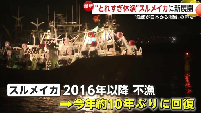 スルメイカは、2016年以降、不漁が続いていたが、2025年は約10年ぶりに回復。