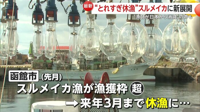 “豊漁”で漁獲枠を超えたという理由で、北海道のスルメイカ漁が2026年3月まで、「休漁」となった。