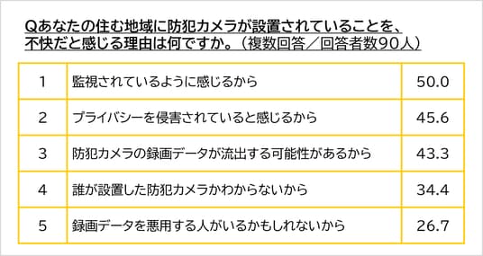 Qあなたの住む地域に防犯カメラが設置されていることを、不快だと感じる理由は何ですか。