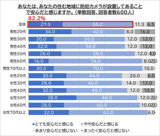 防犯カメラがあることで「安心」と感じる人は82.2%