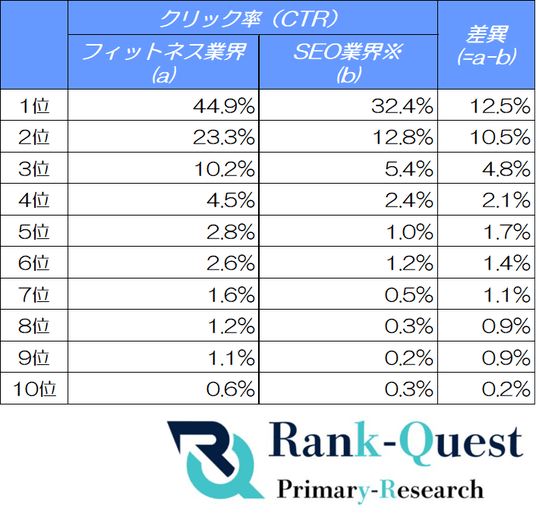 ※ SEO業界のCTR情報はランクエストサイト( https://rank-quest.jp/ )のデータに基づいています。