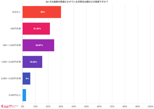 犬の歯磨き関連にかけている月間支出額はどの程度ですか?