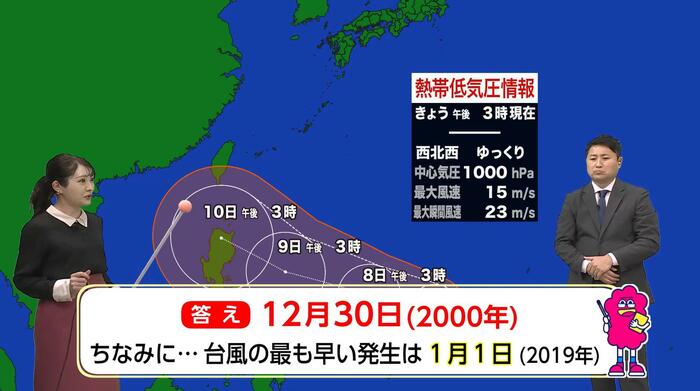 ここでお天気クイズです。台風が1年のうちで最も遅く発生したのはいつでしょうか?