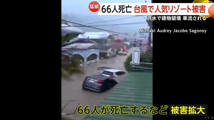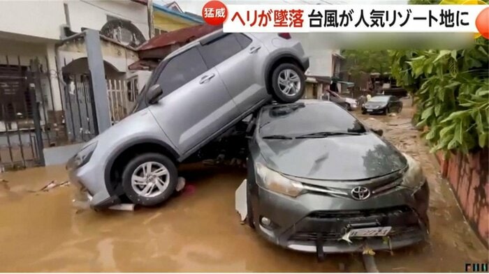 人気のリゾート地・セブ島で4日に撮影された映像では、街に押し寄せた濁流によって、複数台の車が流されている。雨に加え激しい風も吹き荒れ、最大瞬間風速50mを観測した。