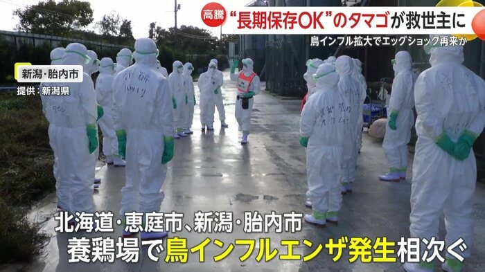11月に入ってからは、北海道・恵庭市や新潟・胎内市の養鶏場で鳥インフルエンザの発生が相次いでいて、今後、さらなる卵の供給不足も懸念されている。