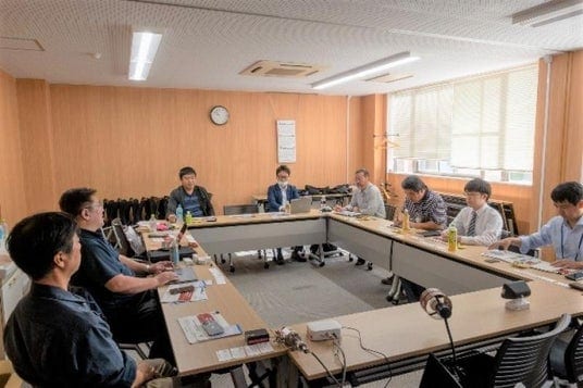 本学からは畑中耕治副タスクフォース長・機関連携部門長をはじめ、技術職員や事務職員らが参加。岩手大学からは技術部理工学系の千葉寿第一技術室長をはじめ岩手大学技術職員、URAが参加しました。さらに、NMR装置(核磁気共鳴装置)等の保守・管理の指導助言者として大阪大学大学院理学研究科の稲角直也技術専門職員が出席しました。