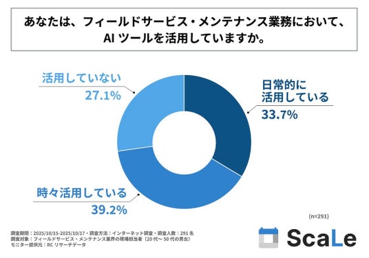 フィールドサービス・メンテナンス業界の現場担当者の7割以上が、業務において、AIツールを活用している