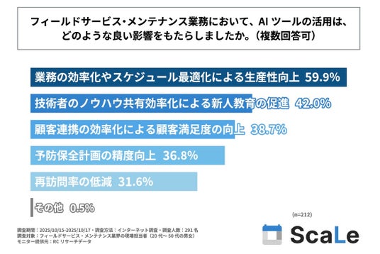 フィールドサービス・メンテナンス業務へのAIツール活用による良い影響、トップは「業務の効率化やスケジュール最適化による生産性向上」