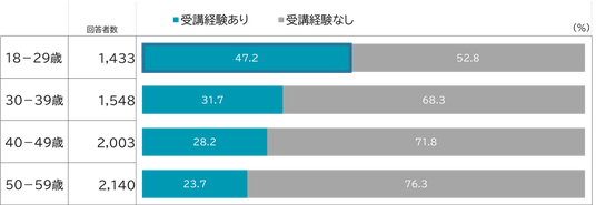 ※金融教育受講経験:設問「あなたは、これまでに学校や職場でお金についての授業・教育を受けたことはありますか。受けたことのある時期をすべてお選びください。」に対し「これまでにそのような授業・教育を受けたことはない」以外の回答をした人