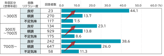 (図表3)年収区分と金融リテラシー度別 資産形成率