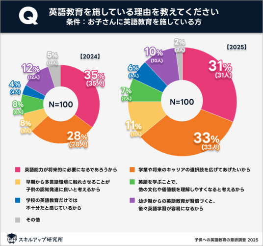 スキルアップ研究所、「【2025年版】子供への英語教育の意欲調査」の結果を発表