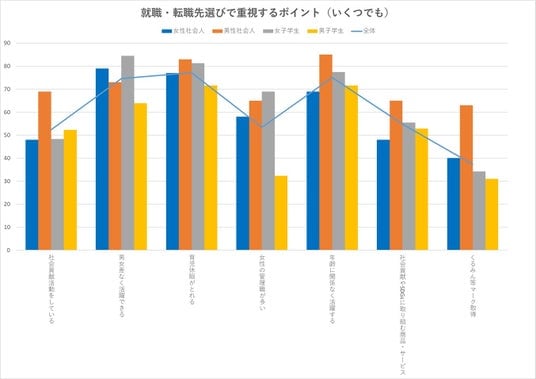 ・男性社会人は、転職の企業選びに社会貢献活動やSDGsへの取り組みを重視する傾向がある。