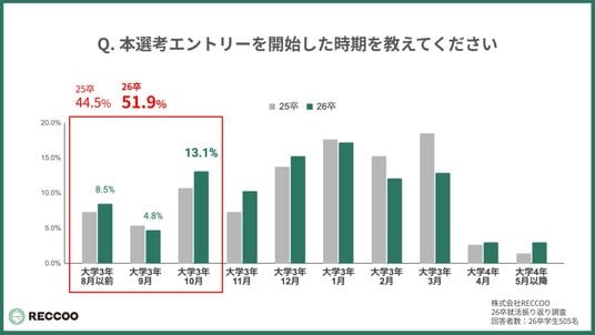 - 就活はさらなる早期化 大学2年の3月以前に開始する学生が前年比10pt増