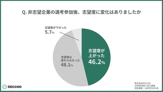 Q. 非志望企業の選考参加後、志望度に変化はありましたか