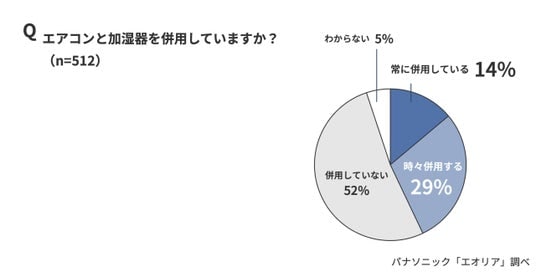 それにもかかわらず、エアコンと加湿器を併用していない人が52%にものぼることがわかりました。