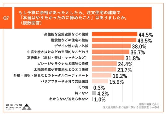 Q7.もし予算に余裕があったとしたら、注文住宅の建築で「本当はやりたかったのに諦めたこと」はありましたか。(複数回答)