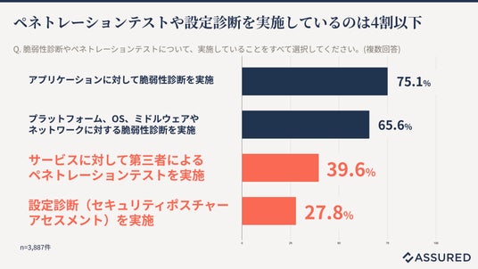 ペネトレーションテストの実施は4割以下、設定診断(セキュリティポスチャーアセスメント)の実施は3割以下