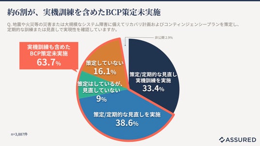 ・BCP:約6割が、実機訓練を含めたBCP策定未実施