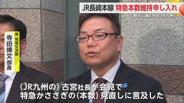 西九州新幹線の開業に伴い並行在来線となったJR長崎本線は特急列車の本数が3分の1以下に激減した。今後さらに減らされる見通しに危機感を抱く沿線の自治体と県は特急の運行本数の維持をJR九州に申し入れた。