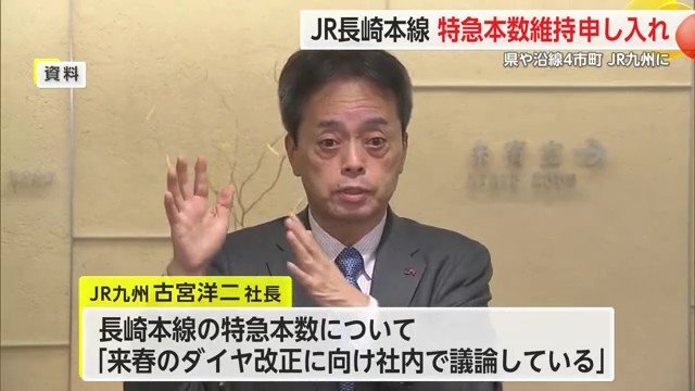 長崎本線の特急本数について、JR九州の古宮社長は今年(2025年)8月に行われた会見で「来春のダイヤ改正に向け社内で議論している」と述べている。