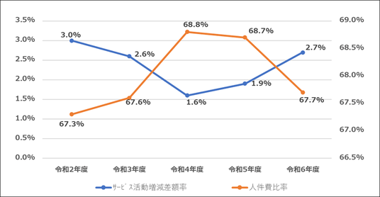 1) サービス活動増減差額率等と人件費比率(人件費比率分析)