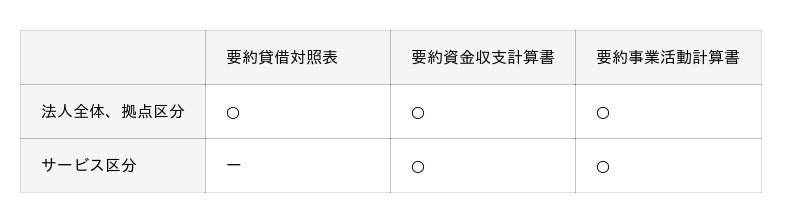 法人全体、拠点区分については要約貸借対照表、要約資金収支計算書及び要約事業活動計算の平均値、サービス区分については要約資金収支計算書及び要約事業活動計算の平均値を確認できます。