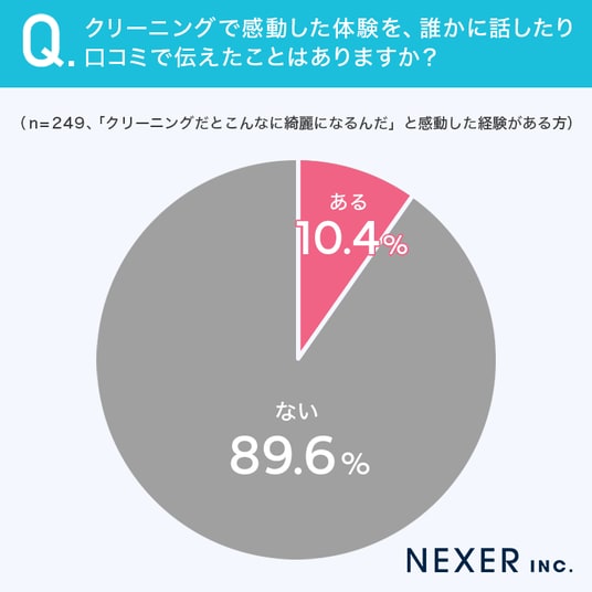 クリーニングで感動しても、約1割しか周囲の人に伝えていないことが分かりました。