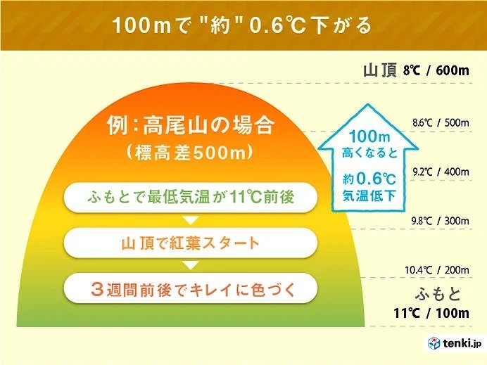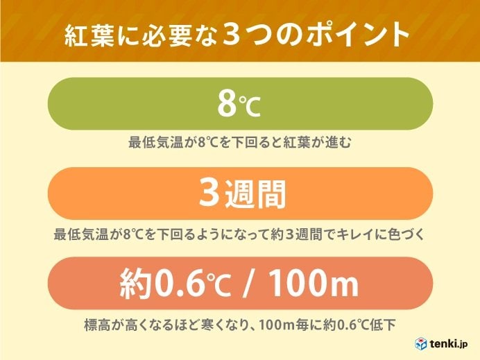 南部は、山で中旬~、市街地は22日の3連休以降が紅葉狩りのベストタイミングと言えそうだ。