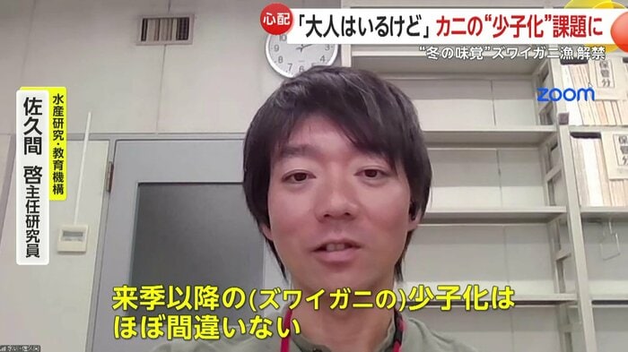 直近数年間は資源は良い見通しなんですけども、来季以降の(ズワイガニの)少子化っていうのは、ほぼ間違いないんです。