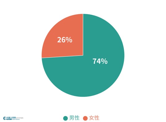 回答者のうち男性が約74%、女性が約26%を占めた。弁護士への相談経験は男性の割合が高く、全体の約4分の3に達した。