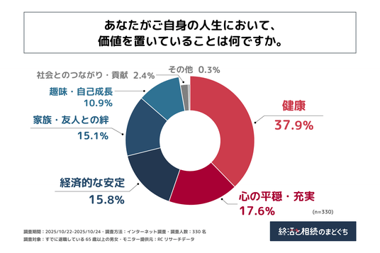 すでに退職している65歳以上の男女の4割弱が、自身の人生において価値を置いていることは「健康」